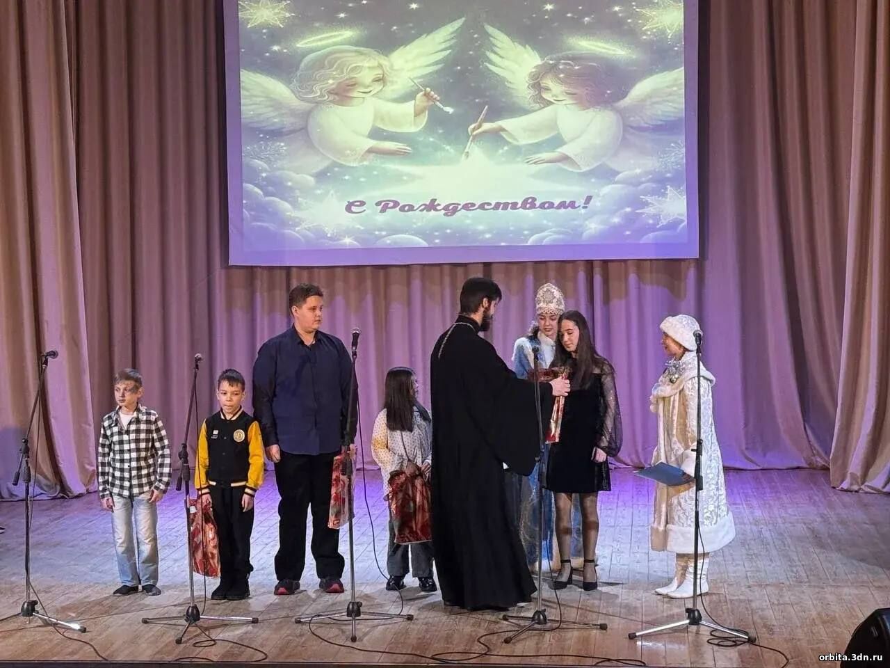 В светлый день Рождества на концертной программе «Рождественские встречи» поздравил воспитанницу и её художественного руководителя Гусеву Т. А. настоятель храма Иерей Арсений, вручив им грамоту и благодарственное письмо.